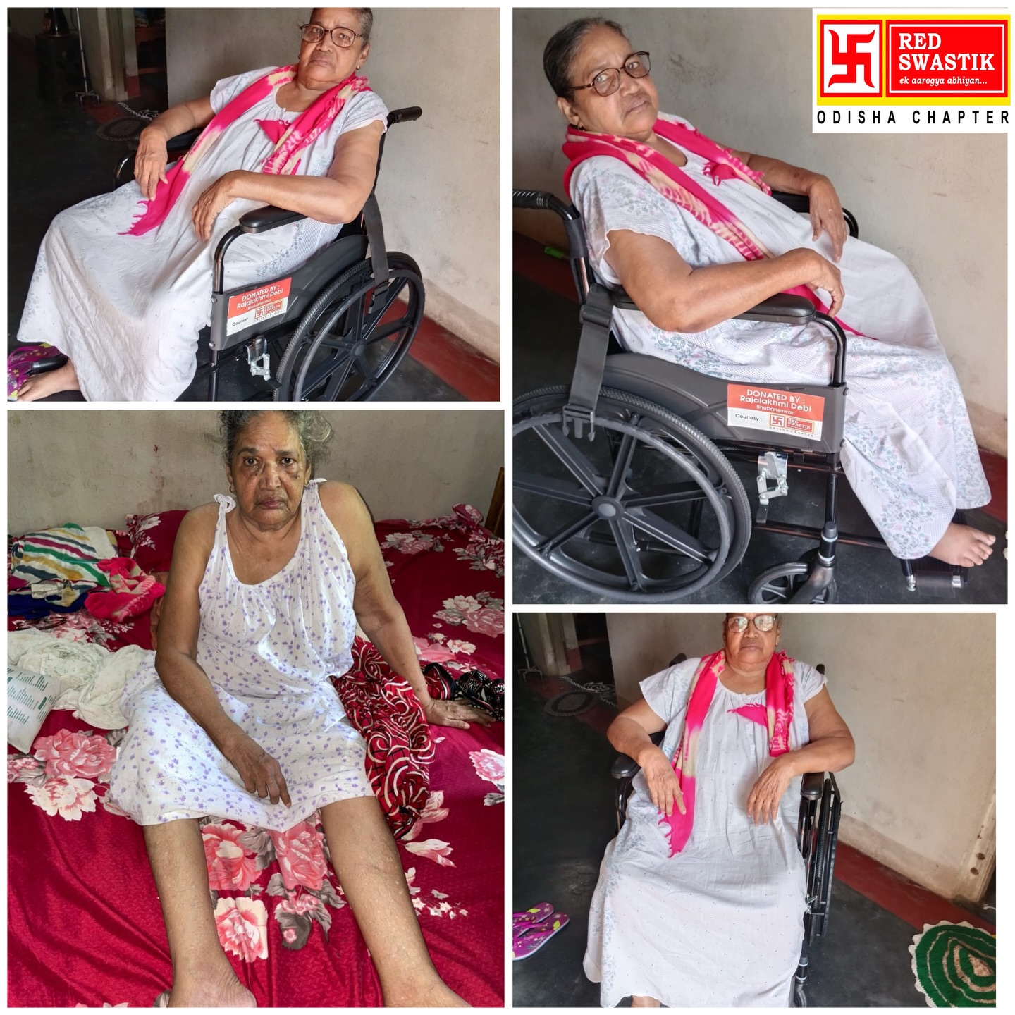 Malika Senapati, 66, Talasanga, Kendrapara. Brain stroke & paralysis made life tough, but we’ve provided a wheelchair to ease her movement.
