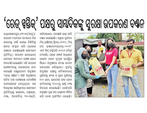 We thought of some one to whom we use them make our self on headlines. But who ever had thought of them? We did with distributing covid protection kit to the frontline media personality. We can't see them as covid 19 affected we want them was covid warrior. They are the source for giving us the news every minute. Thanks all Media personnal. Special thanks to Maitri Monali who joined us today for the noble cause and promise to be along with us to serve for mankind along with Red Swastik Society Odisha with 250kits.