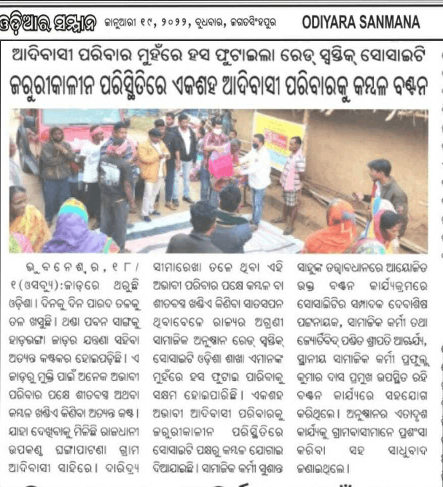 When there is winter we use to serve the people with blankets and this year it had started from the day of Merry Christmas(25.12.21) from the village Kandelei, few kilometres away from Bhubaneswar where Tribal people stay. 50 blankets distributed at those area.