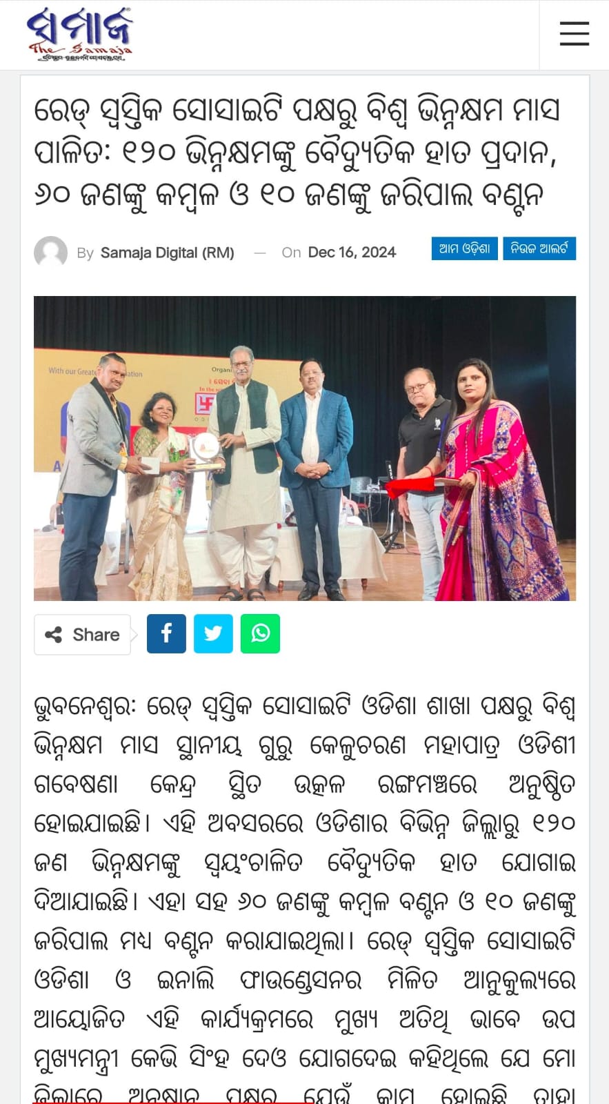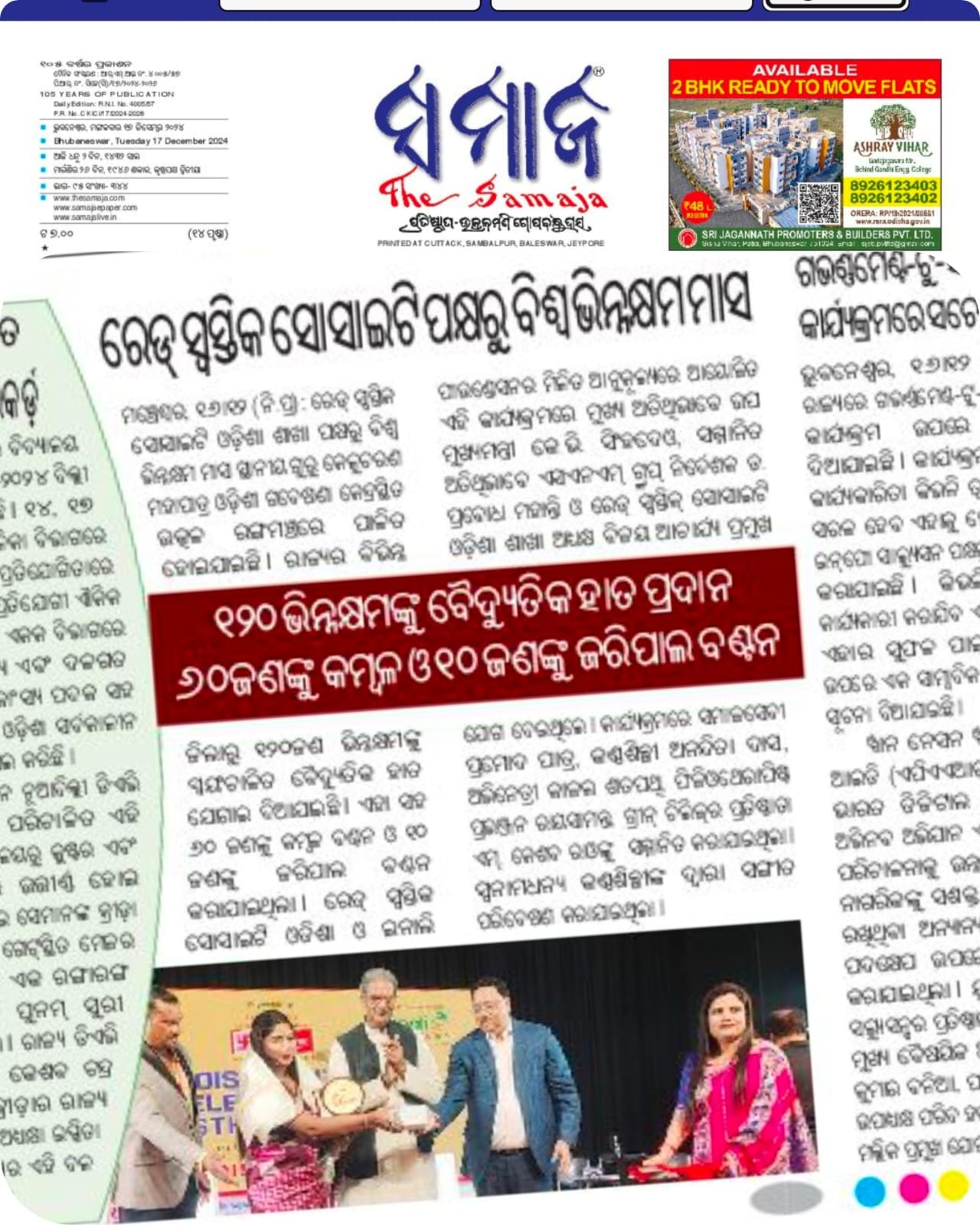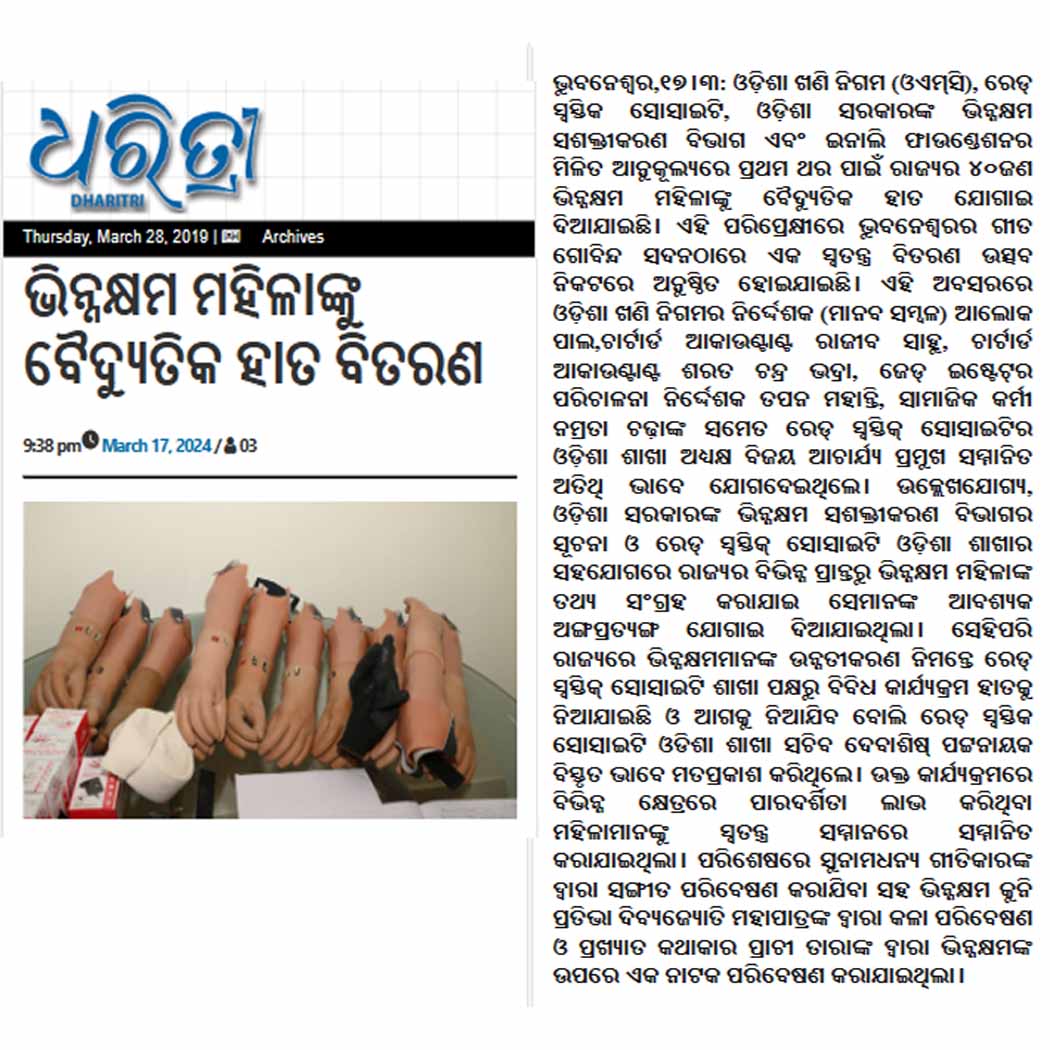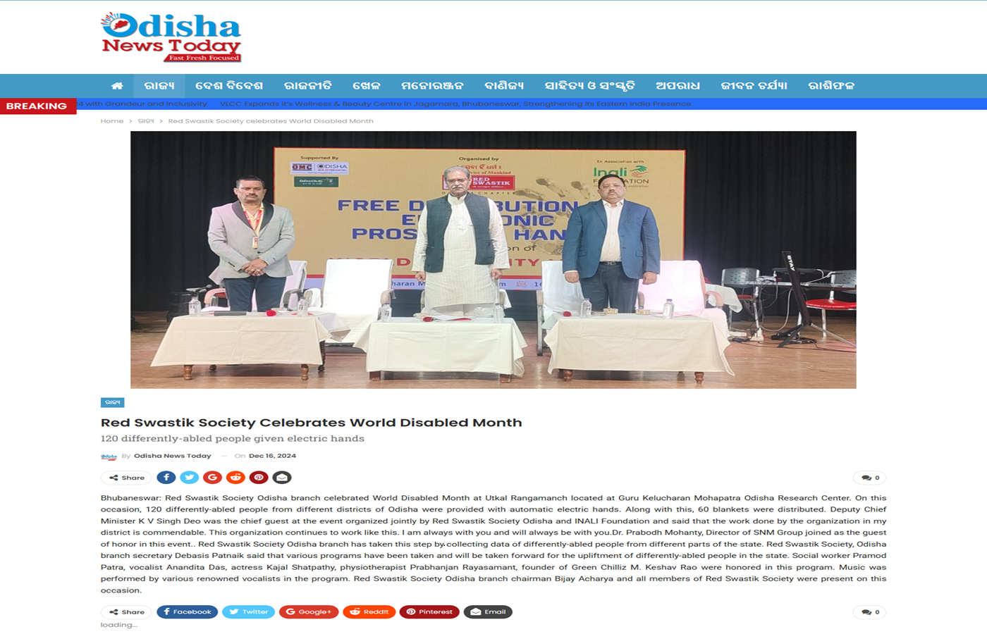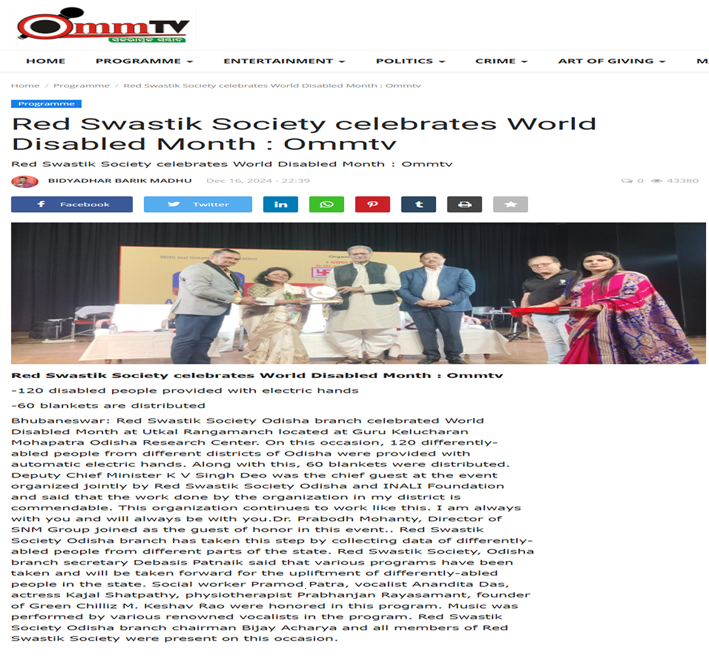 Free artificial Electronic Limbs for below elbow amputees were given to 84 beneficiaries all over Odisha on 16th December 2024. They were taken care with foods and fare in this camp.